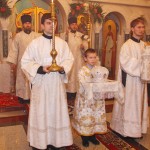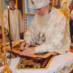После чина освящения в храме была совершена Божественная литургия святителя Иоанна Златоуста. За богослужением владыке сослужили протоиерей Николай Андрианов – настоятель храма, иеромонах Василий (Скоренко) – секретарь Песоченской епархии, иерей Александр Рябов, иеромонах Андрей (Синицын) – благочинный округа, представители духовенства Калужской митрополии, протодиакон Сергий Комаров – руководитель епархиальной пресс-службы.