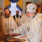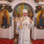 Затем архипастырь подарил в дар храму к чудотворной иконе святителя Николая святую панагию и преподал верующим благословение.