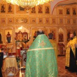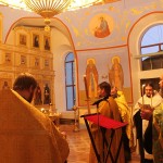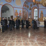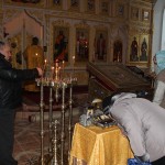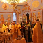 При пении тропарей святым ковчег с мощами был внесен в храм и поставлен в середине собора рядом с иконой святителя Феодосия Черниговского. Затем священнослужители совершили вечернее богослужение с чтением акафиста святителю Феодосию Черниговскому.
