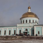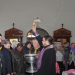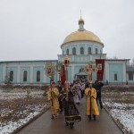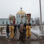 Встретив святыню, духовенство и верующие совершили Крестный ход вокруг храма, после чего был отслужен водосвятный молебен.
