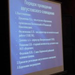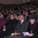 Собравшихся в переполненном зале коллег приветствовала заведующая отделом образования Кировской районной администрации Ольга Лукьянова. Она сообщила, что за летний период все образовательные учреждения района достойно подготовились к новому учебному году, в детские сады зачислено 480 детей, в школы придет около 420 первоклассников. Ольга Александровна также рассказала, как выполнена резолюция августовского совещания прошлого 2013 года и озвучила рабочие приоритеты на 2014-2015 год.На педсовете присутствовал архиепископ Песоченский и Юхновский Максимилиан. Он говорил о достижении обществом духовного благополучия и о том, какую роль в этом играют Церковь и школа. В знак соработничества в данном направлении владыка передал заведующей отделом образования комплект учебников по курсу «Основы православной культуры», назвав её первой ласточкой, которая сделает весну в деле приобщения учащихся к базовым ценностям нашего государства.- Всего же, — отметила Ольга Лукьянова, принимая нужный подарок, — Калужская митрополия прибрела для кировских школ учебников по ОПК на сумму более полумиллиона рублей.В ходе конференции слово, конечно же, предоставили самим педагогам. Опытом в деле духовно-нравственного воспитания учащихся поделилась заместитель директора по воспитательной работе школы №2 Елена Филимонова. Каким образом в Воскресенской школе решаются проблемы, связанные с развитием кадрового потенциала, присутствующие узнали от директора образовательного учреждения Анны Дашиной. С большим волнением выступала старший воспитатель детского сада №11 «Берёзка» Елена Романова. Дошкольному образованию предстоит вскоре перейти на новые государственные стандарты, и в опережающем режиме внедрения стандартизации будет работать педагогический коллектив Елены Владимировны. Она доложила о его готовности к нововведениям, главным из которых является то, что в детсады вернётся принцип игры с детьми и обязательным станет вовлечение в образовательный процесс родителей.С началом нового учебного года педагогов поздравил глава Кировской районной администрации Игорь Феденков. Он поблагодарить всех за верность профессии, пожелал развития и успехов. Игорь Николаевич провёл церемонию награждения. Были вручены Благодарственные письма. Их получили тесно сотрудничающие с местной властью архиепископ Песоченский и Юхновский Максимилиан и благочинный 1-го округа Песоченской епархии иерей Александр Рябов, а также хорошо подготовившие свои учреждения к встрече детей руководители школ №1, №6, №7, Воскресенской школы и заведующая детским садом №11.В Калуге прошёл ежегодный педагогический форум, на котором учителю технологии Шайковской школы №2 Татьяне Клочковой было присвоено звание «Почетный работник общего образования Российской Федерации».