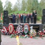 В торжественной обстановке прошло возложение венков и цветов к подножию мемориала. В нем приняли участие председатель Законодательного Собрания Калужской области В.С. Бабурин, заместитель губернатора Калужской области Р.В. Смоленский, глава МР «Куйбышевский район» С.А. Воронин, глава администрации МР «Куйбышевский район» С.Н. Макридов, благочинный 1-го округа Песоченской епархии иерей Александр Рябов, ветераны Великой Отечественной войны, труженики тыла, воины Российской армии, делегации муниципальных районов Калужской области.