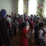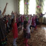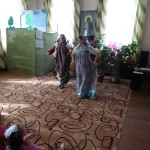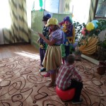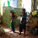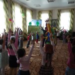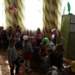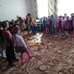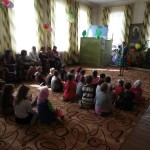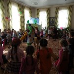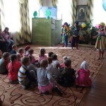 Когда все собрались, дети разместились на ковре, а родители расположились на диванах и на креслах. Матушка обратилась с приветственным словом к воспитанникам и взрослым, поинтересовалась, как они провели лето, интересно ли? А потом она объявила ребятам, что в этот замечательный день к ним пришли интересные и веселые гости – клоуны Бом и Бим, и Ириска! Что тут началось! Загадки, подвижные игры закружили ребят по залу. Так же детишки, глядя на забавных Бома, Бима и Ириску, научились веселому танцу, повторяя за ними различные движения. Чтобы дать ребятишкам немного передохнуть, клоуны рассадили их на ковре, а сами показали им увлекательную кукольную сценку. Во время показа сценки в зале воцарилась полная тишина, маленькие зрители с интересом наблюдали за происходящим.