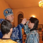 По прочтении евангельского зачала, отец Александр поздравил молящихся с праздником, после чего Высокопреосвященнейший владыка совершил елеопомазание.