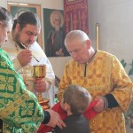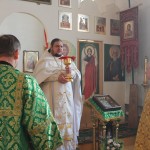 По прочтении воскресного евангельского зачала, отец Александр поздравил молящихся с праздником и ознакомил с расписанием богослужений на предстоящую седмицу, после чего Высокопреосвященнейший владыка совершил елеопомазание.