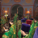 Высокопреосвященнейшим владыкам сослужили настоятель собора иерей Александр Рябов, благочинный Кировского района, духовенства Песоченской епархии и священнослужителей Калужской митрополии.
