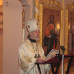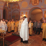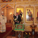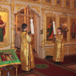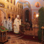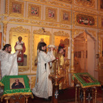По окончании Литургии Высокопреосвященнейший владыка и сослужащее ему духовенство совершили чин славления празднику.