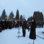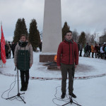 На мероприятии выступили глава кировский районной администрации Игорь Николаевич Феденков, глава городской администрации Оксана Юрьевна Московская, архиепископ Песоченский и Юхновский Максимилиан, руководитель поисковой группы «Поиск» Виктор Михайлович Ефимочкин, жительница блокадного Ленинграда, ветеран труда, член совета ветеранов Людмила Федоровна Казенникова, представитель от работающей молодежи Наталья Николаевна Дорохова.