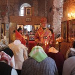 Владыке сослужили: настоятель храма протоиерей Павел Солдатов и благочинный 1-го округа иерей Александр Рябов при диаконе Евгении Васильеве.
