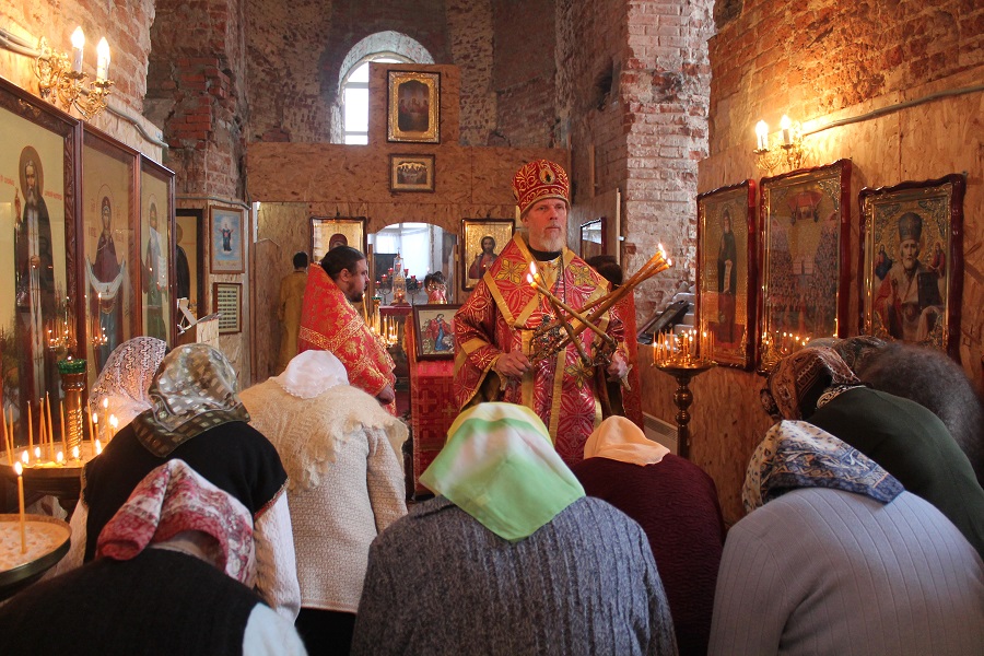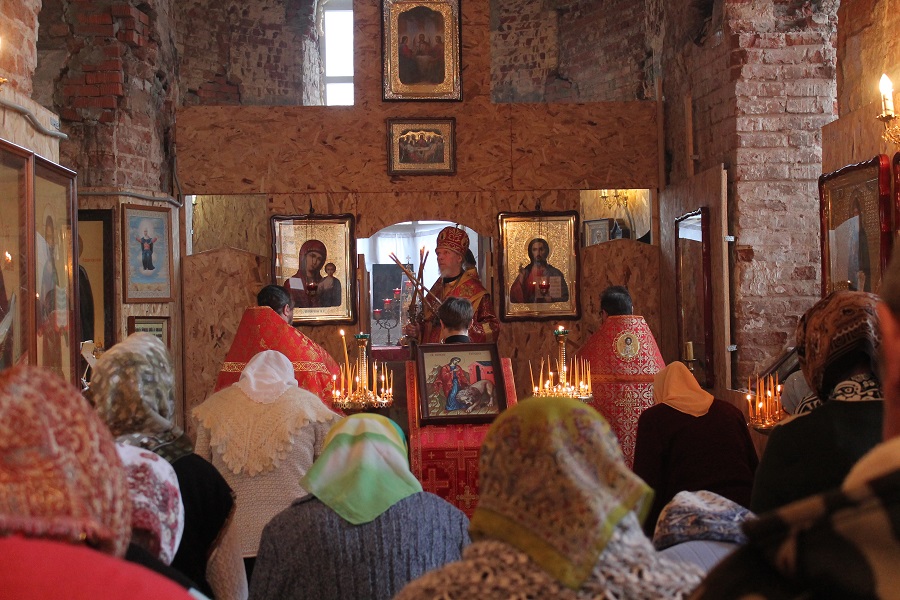 Богослужение проходило в южном пределе, который в дореволюционные годы был освящен в честь святой мученицы Татианы.