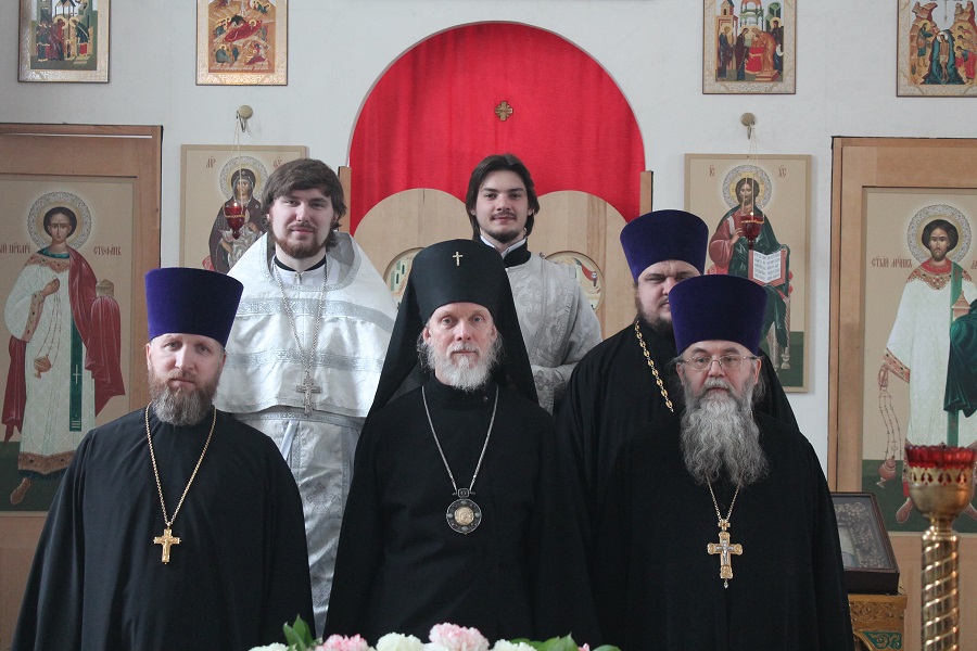 Его Высокопреосвященству сослужили благочинный Песоченского округа настоятель собора иерей Александр Рябов; настоятель Казанского кафедрального собора г. Людиново протоиерей Алексий Жиганов (Козельская епархия); благочинный Мосальского округа настоятель Свято-Никольского храма с. Барятино протоиерей Николай Андриянов; клирики собора: иерей Михаил Камышев и диакон Евгений Васильев.