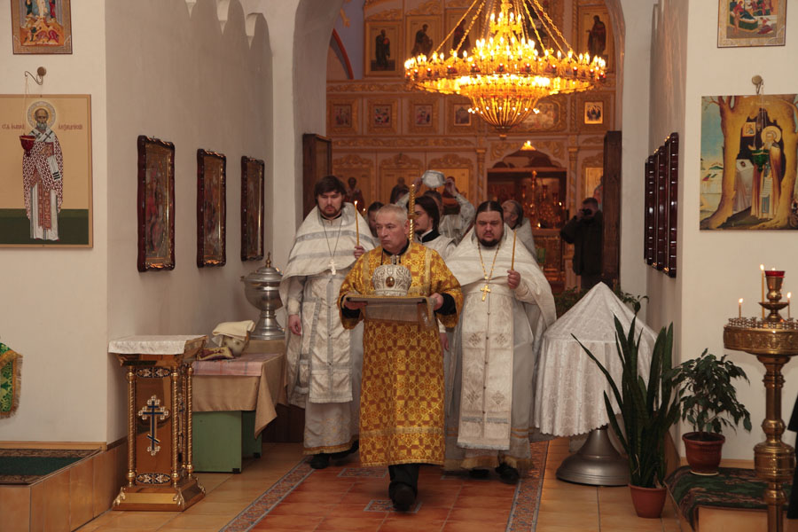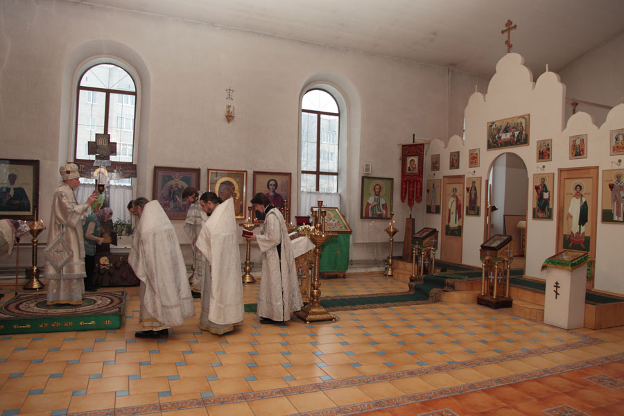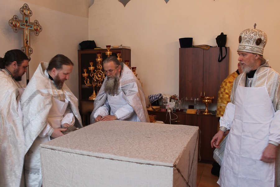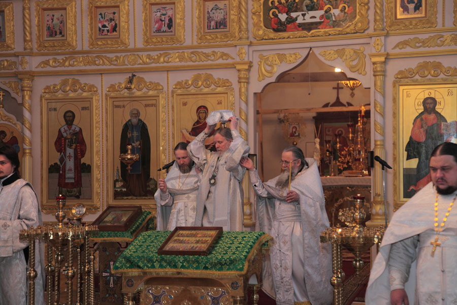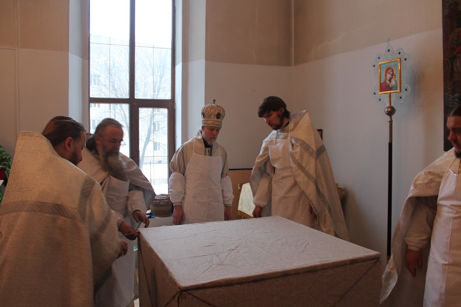 12 февраля в день памяти вселенских учителей и святителей Василия Великого, Григория Богослова и Иоанна Златоустого Управляющий Песоченской епархией архиепископ Максимилиан совершил «Чин великого освящения» придела в честь святителя Афанасия Великого расположенного в зимней части кафедрального собора г. Кирова.