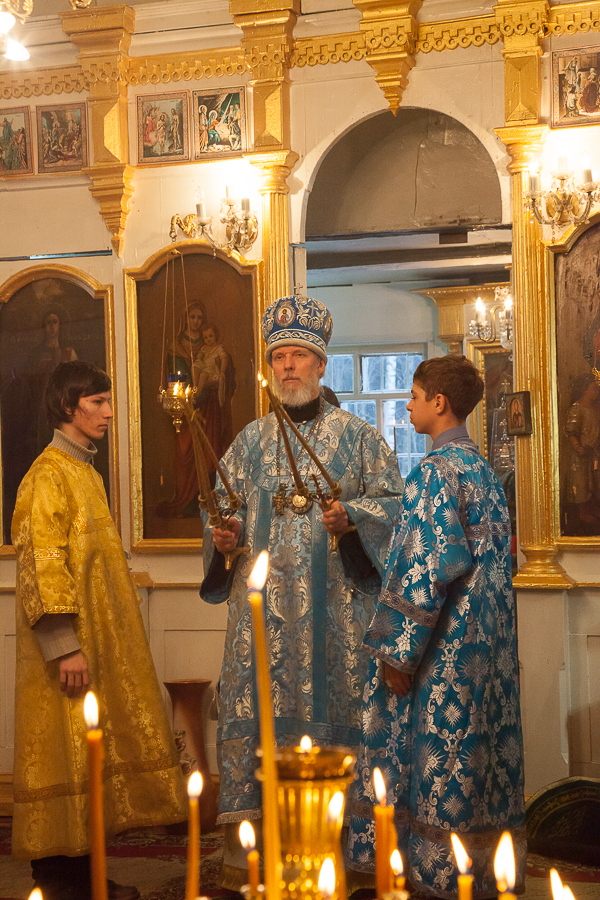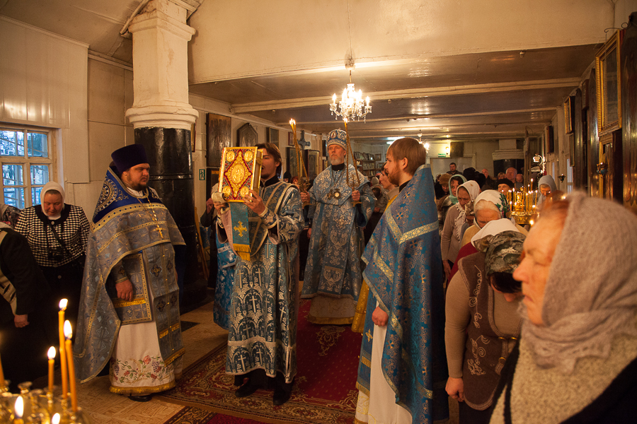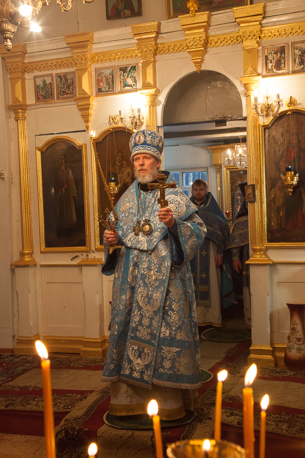 Владыке сослужили: благочинный 1-го (Песоченского) округа иерей Александр Рябов и настоятель храма иерей Сергий Азаркин при диаконе Евгении Васильеве.