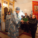 Затем архиепископ Максимилиан вручил директору ООО «Теленет» Залипаеву Олегу Викторовичу, благодетелю храма, Патриарший знак «700-летие преподобного Сергия Радонежского» во внимание к трудам на благо Церкви Христовой.