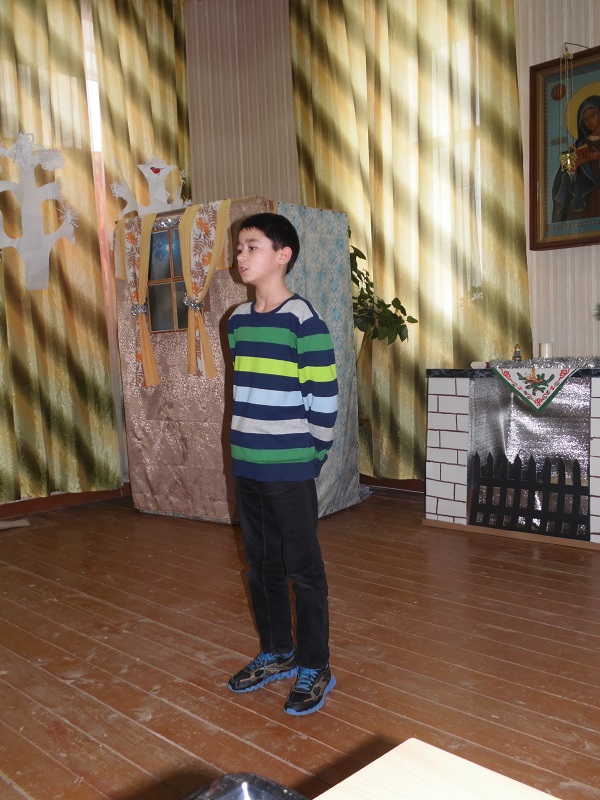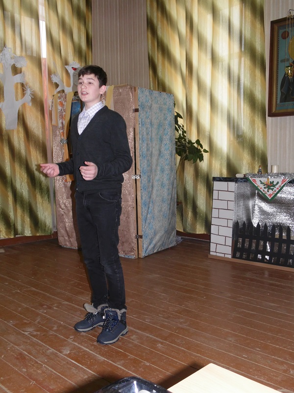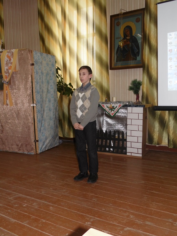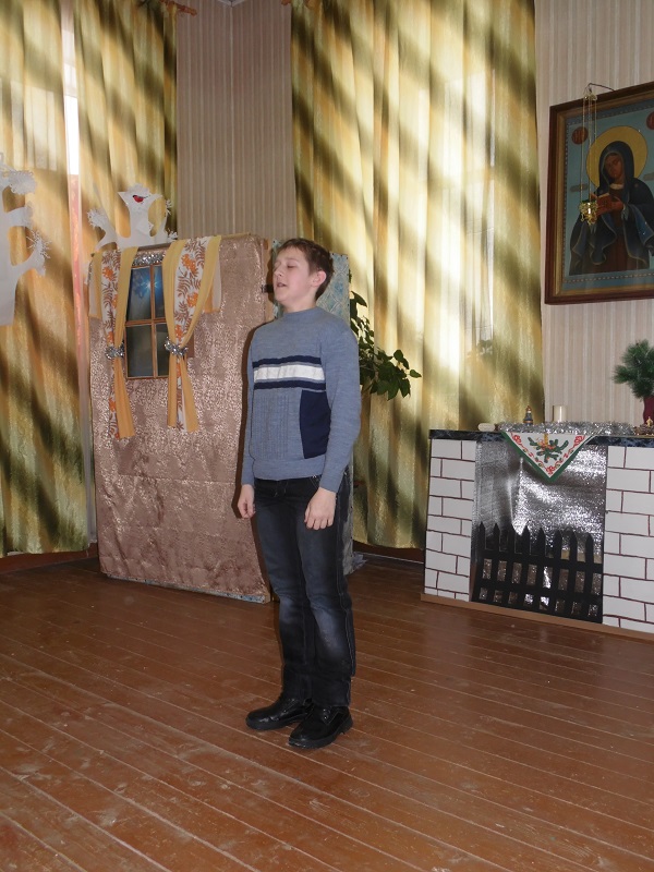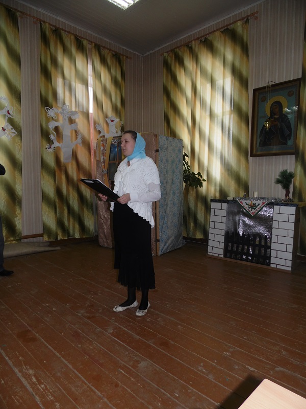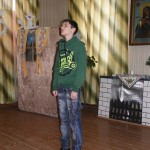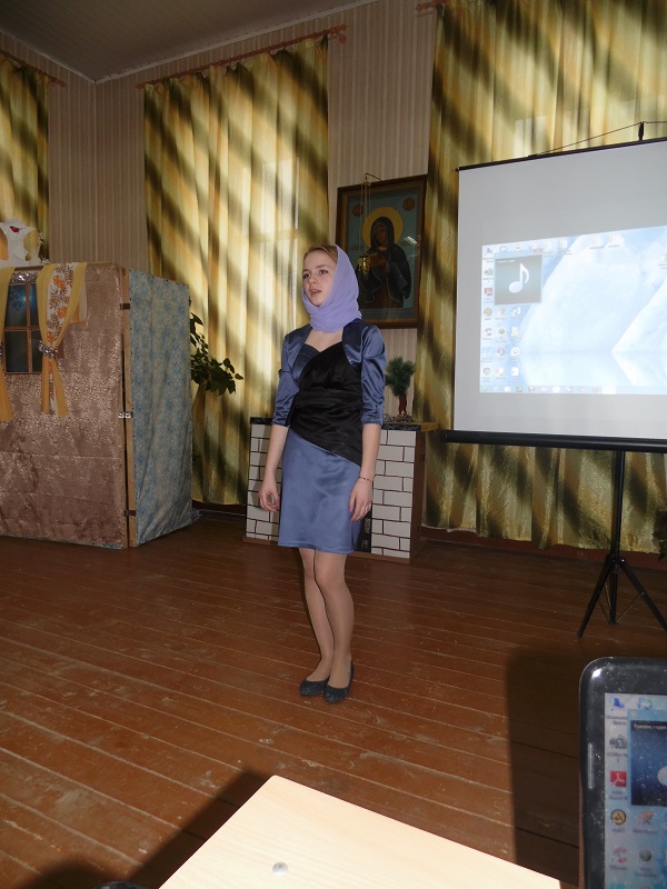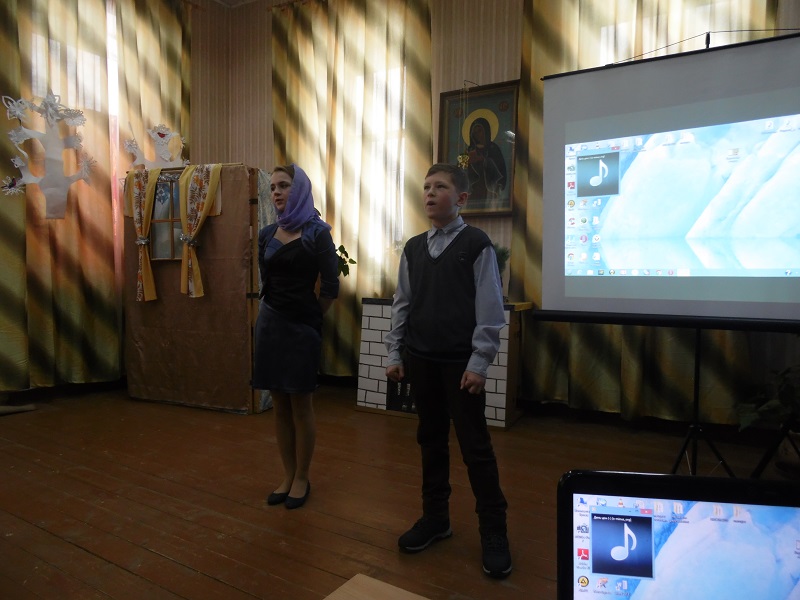 Помимо победителей так же каждый участник получил поощрительный приз. Во время конкурса воспитанники воскресной школы подготовили несколько музыкальных номеров – с сольной песней выступила Юля Крупенкова, она же потом спела дуэтом с Ваней Драченниковым. Завершающим номером стала песня, исполненная хором младших девочек.
