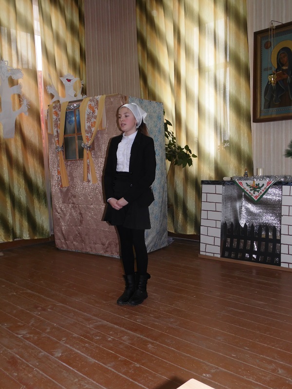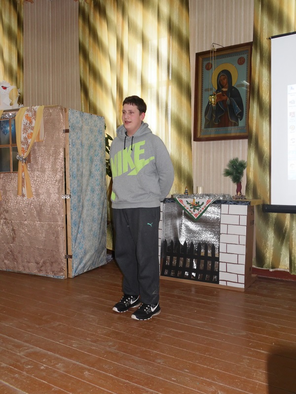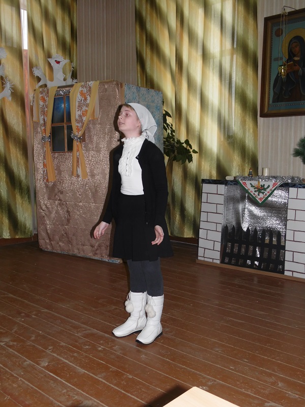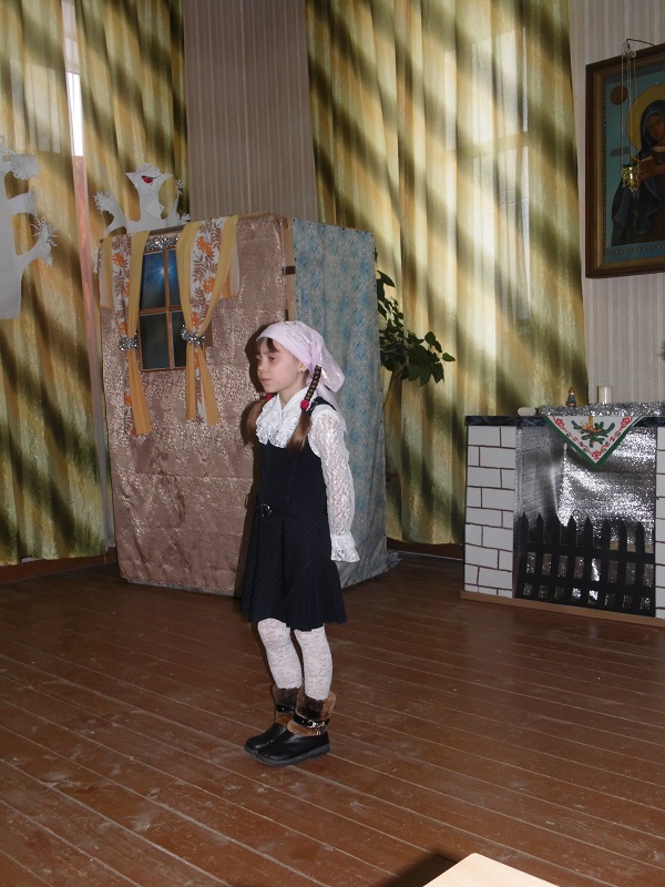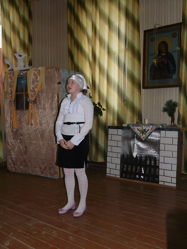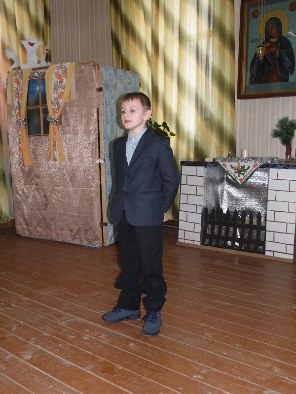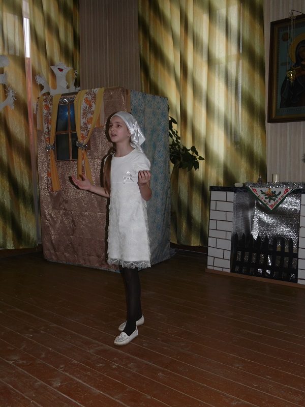 Помимо победителей так же каждый участник получил поощрительный приз. Во время конкурса воспитанники воскресной школы подготовили несколько музыкальных номеров – с сольной песней выступила Юля Крупенкова, она же потом спела дуэтом с Ваней Драченниковым. Завершающим номером стала песня, исполненная хором младших девочек.