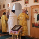 По окончании литургии состоялась встреча святынь – иконы и частицы мощей блаженной Матроны Московской чудотворицы, доставленных из Пафнутьево-Боровского мужского монастыря.