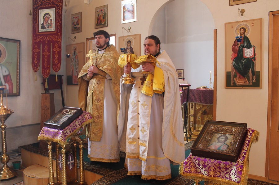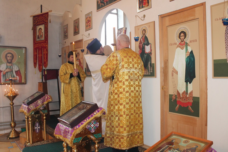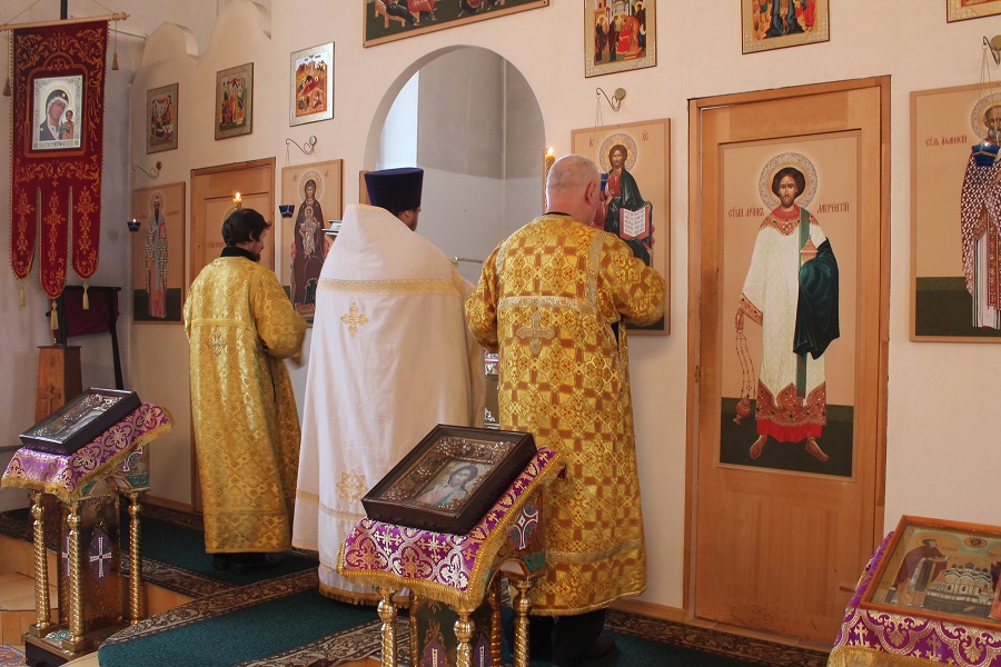 Богослужение возглавил настоятель собора иерей Александр Рябов в сослужении клирика собора иерея Михаила Камышева.