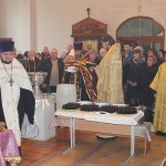 В завершении молитвословия протоиерей Георгий Дмитриев поздравил всех присутствующих со знаменательным событием — принесением Святыни в кафедральный собор в дни Великого поста, после чего произнес слово назидания, в котором особо отметил значимость пребывания Святыни и поклонение ей в дни Святой Четыредесятницы.