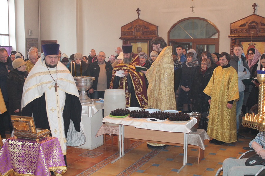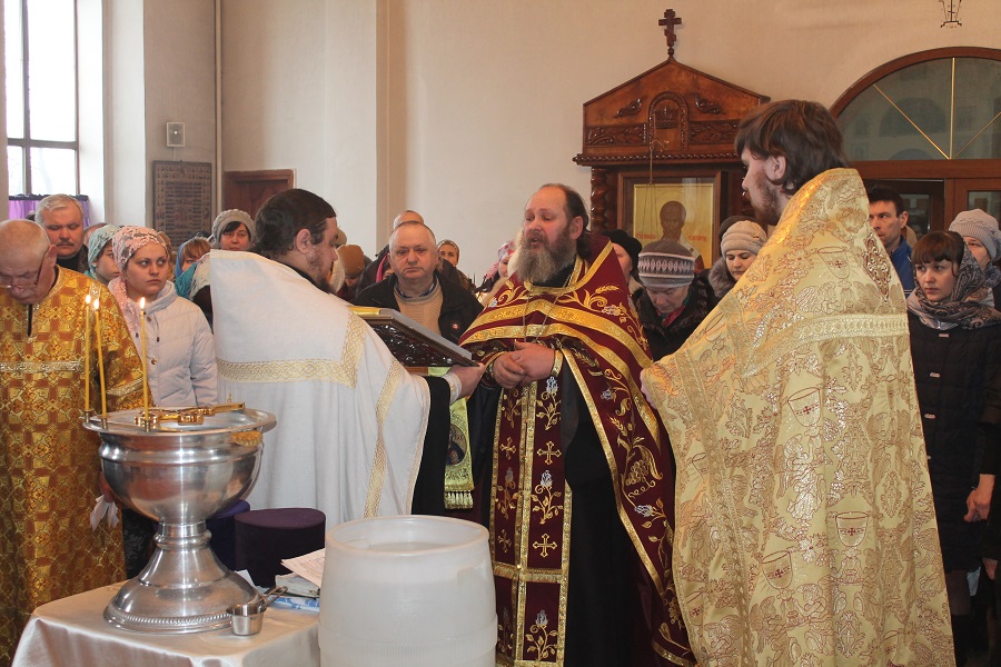 В завершении молитвословия протоиерей Георгий Дмитриев поздравил всех присутствующих со знаменательным событием — принесением Святыни в кафедральный собор в дни Великого поста, после чего произнес слово назидания, в котором особо отметил значимость пребывания Святыни и поклонение ей в дни Святой Четыредесятницы.