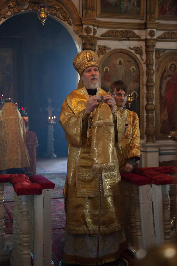 Владыке сослужили настоятель храма протоиерей Максим Некрасов и диакон Евгений Васильев.