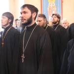 Также архипастырям сослужили представители духовенства всех трех епархий. За богослужением пел мужской хор Успенского собора под управлением священника Симеона Худякова.