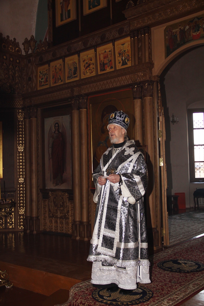 С проповедью к собравшимся обратился архиепископ Максимилиан, который затронул тему спасения человека и важность почитания Честного Креста Господня. Владыка привел множество изречений святых отцов о крестоношении и преодолении скорбей, которые человек получает в своей жизни, преступая Христовы заповеди. «Терпение скорбей и крестоношение – это как последняя надежда человека на спасение, если в своей жизни он не преуспел в доброделании», — отметил архипастырь.
