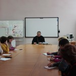 Встреча проходила в «Информационно-методическом центре» в форме лекционного занятия. Тема лекции была посвящена празднику Светлого Христова Воскресения. Пасхи.