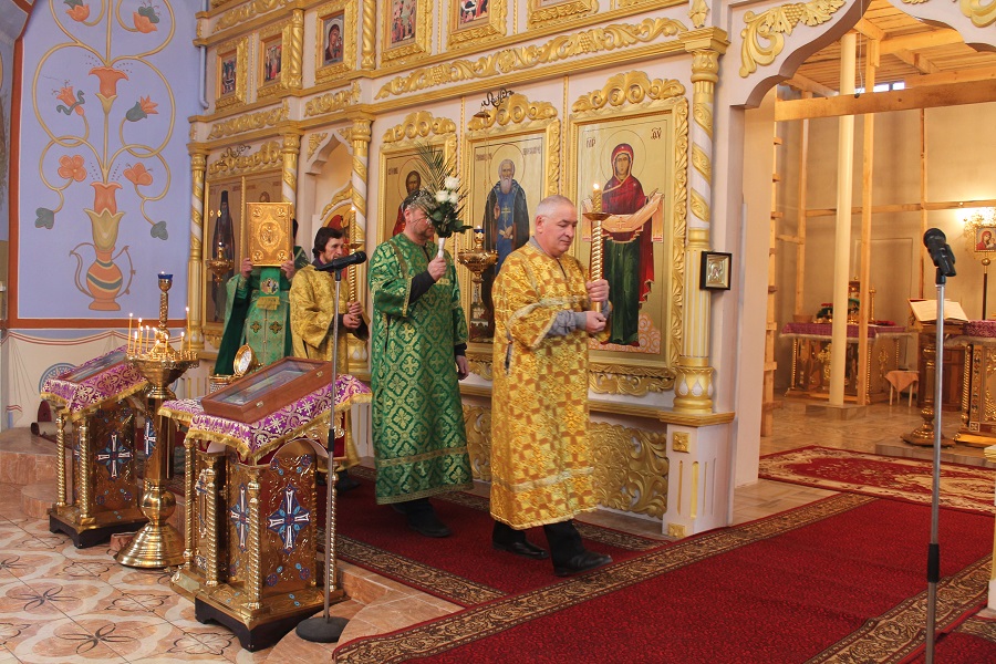 5 апреля в день празднования Входа Господня в Иерусалим в кафедральном соборе святого благоверного князя Александра Невского г. Кирова была совершена праздничная Божественная литургия и водосвятный молебен.