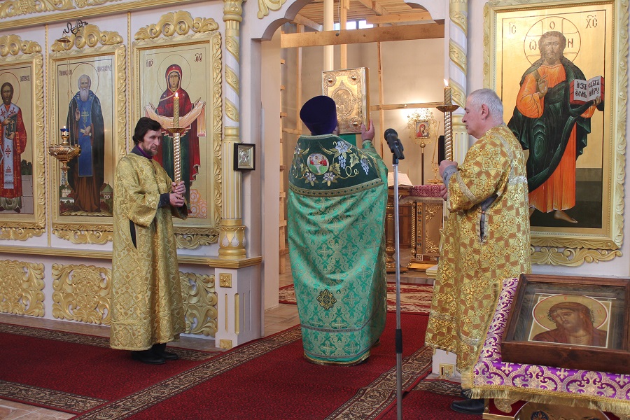 Богослужение возглавил настоятель собора иерей Александр Рябов в сослужении клирика собора иерея Михаила Камышева.
