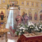Его Высокопреосвященству сослужили: настоятель собора иерей Александр Рябов и штатный диакон Евгений Васильев.