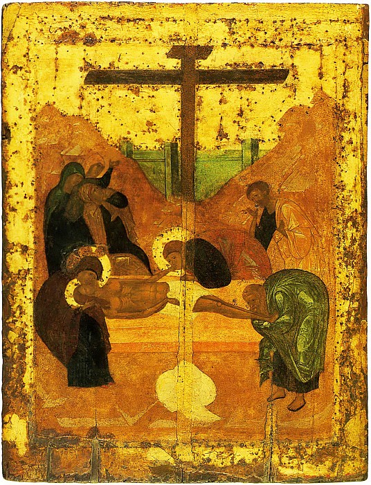 К дверям гроба привалили большой камень. При погребении Иисуса Христа находилась Мария Магдалина, мать Иакова и Иосиева.