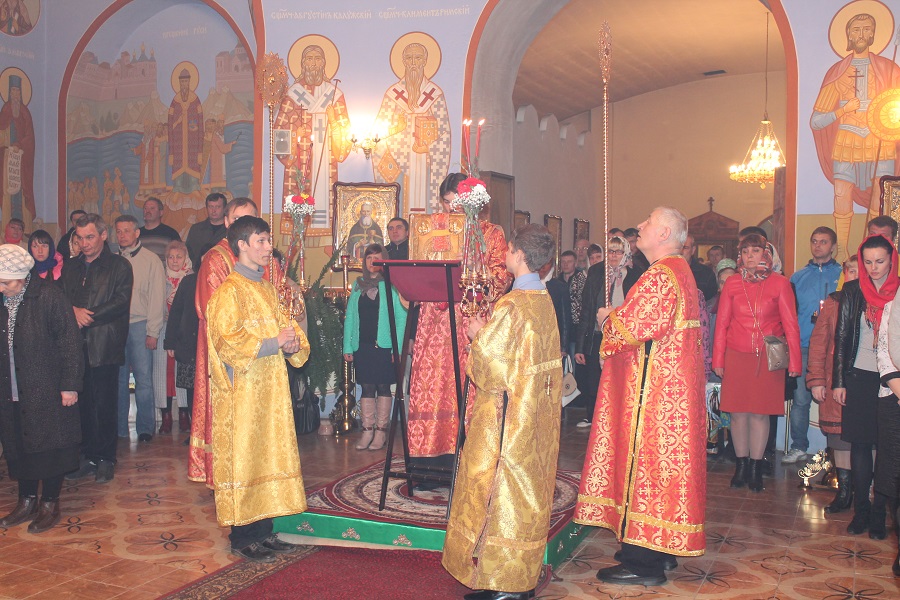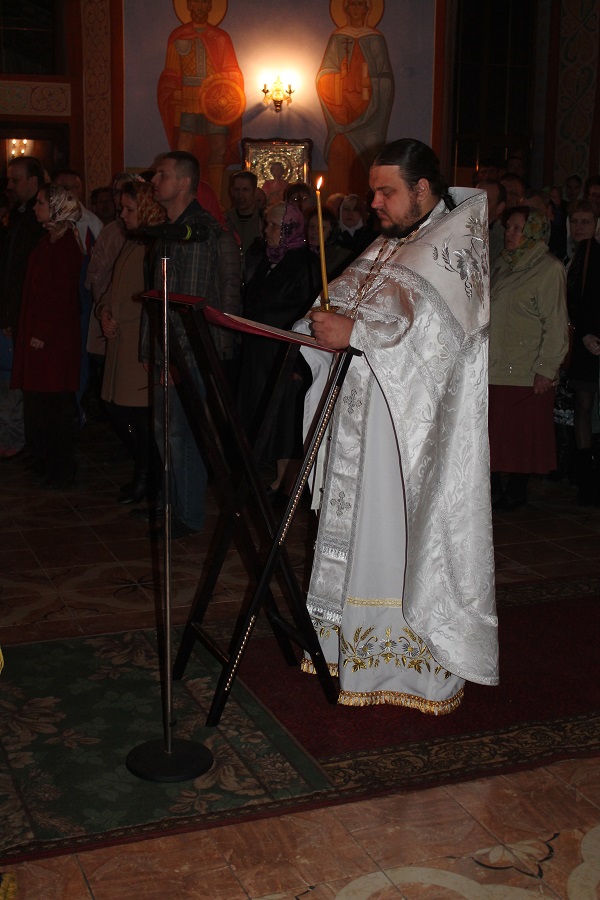 По запричастном стихе иерей Михаил Камышев — клирик собора, огласил Пасхальное послание Управляющего Песоченской епархией Высокопреосвященнейшего Максимилиана архиепископа Песоченского и Юхновского.