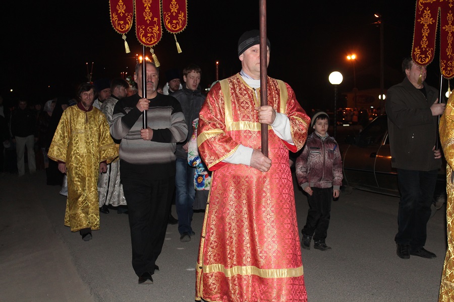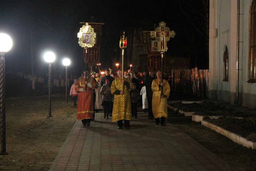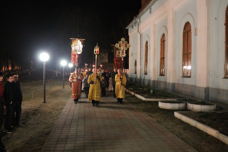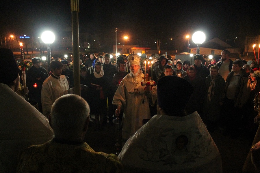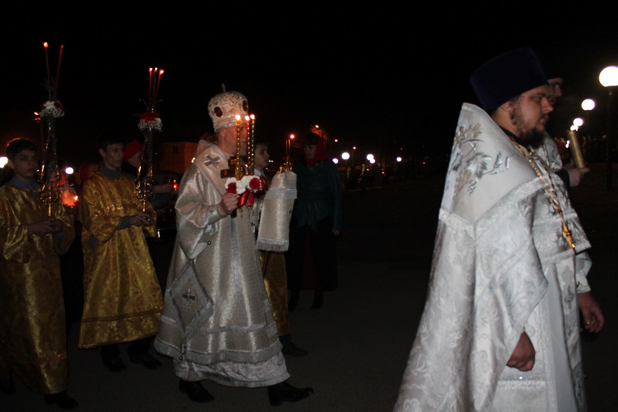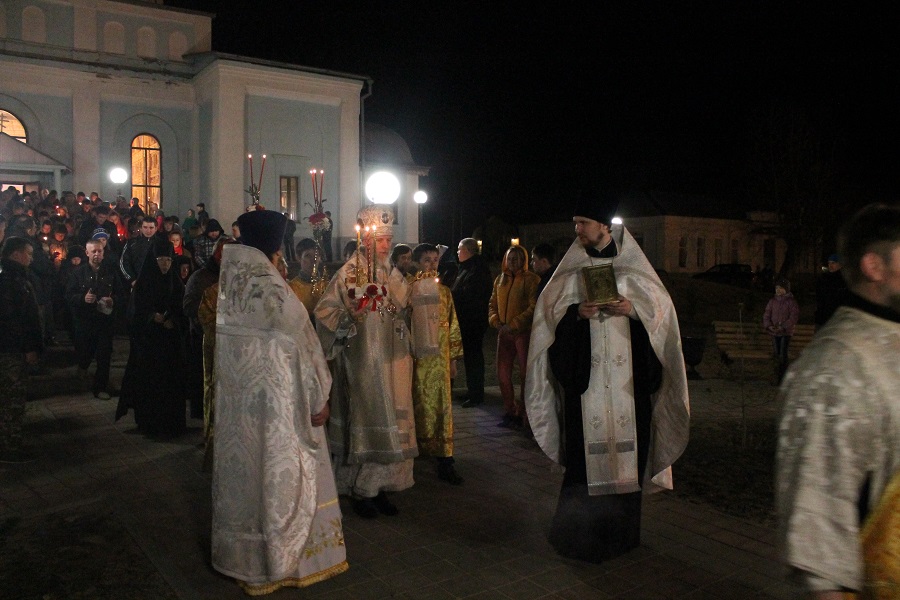 После полунощницы был совершен крестный ход, после чего Владыка возглавил Пасхальную заутреню и Божественную литургию святителя Иоанна Златоуста.