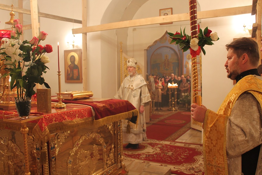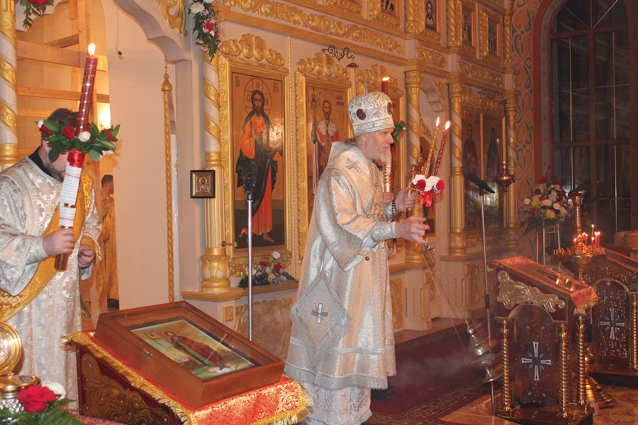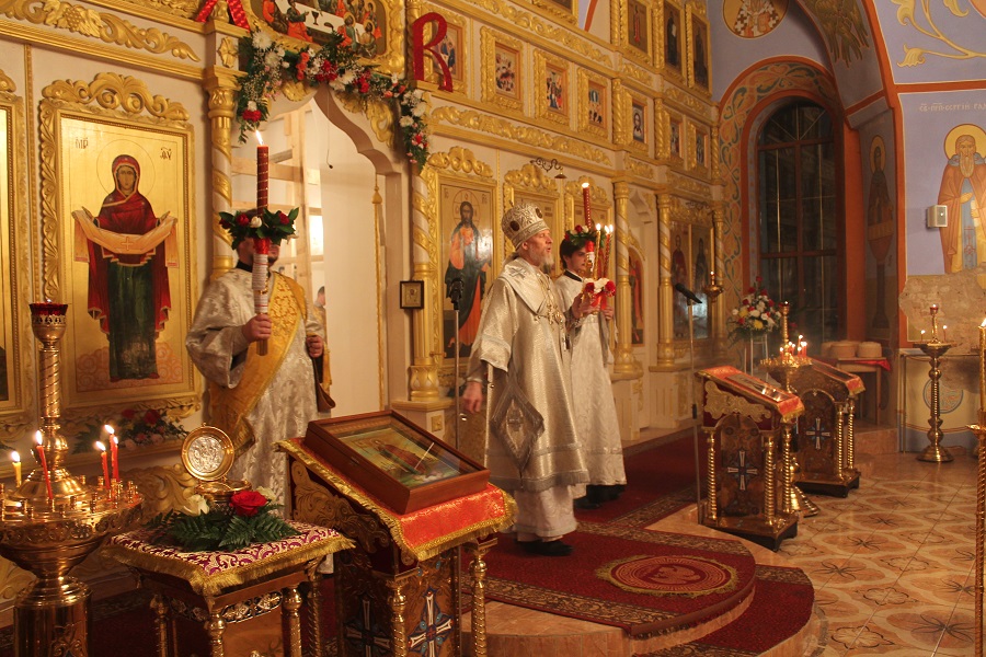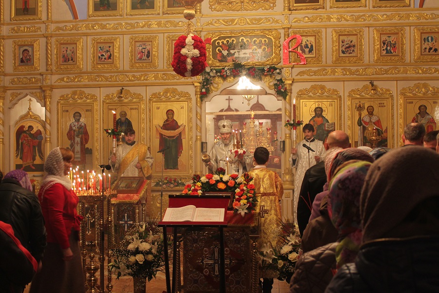 За Пасхальной заутреней владыка Максимилиан зачитал «Слово огласительное святителя Иоанна Златоуста на Святую Пасху».