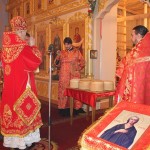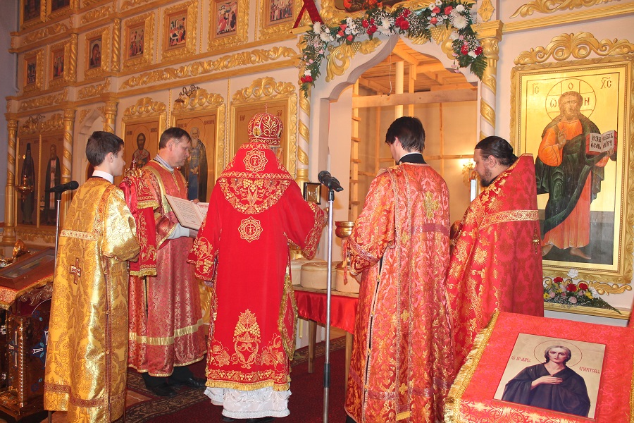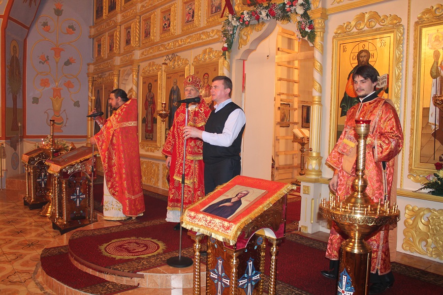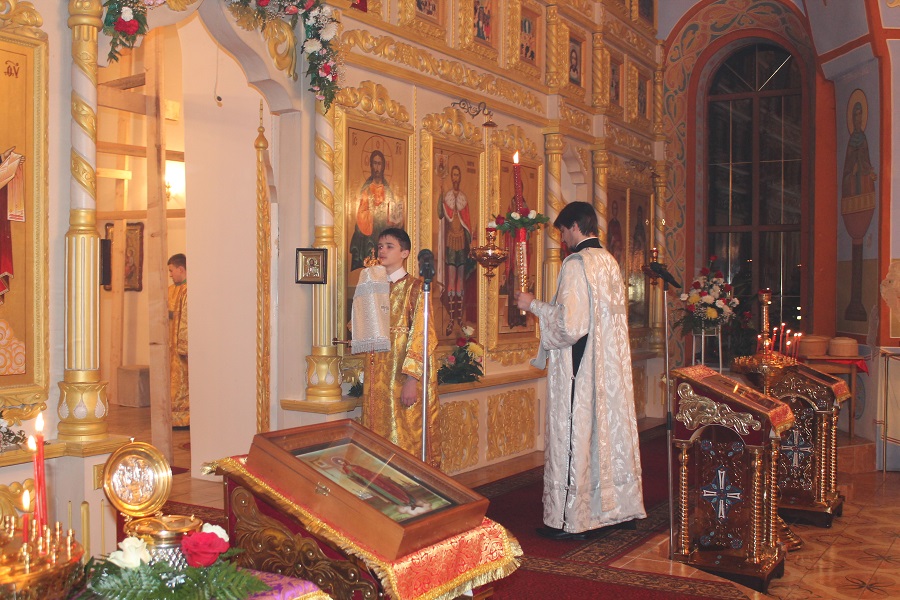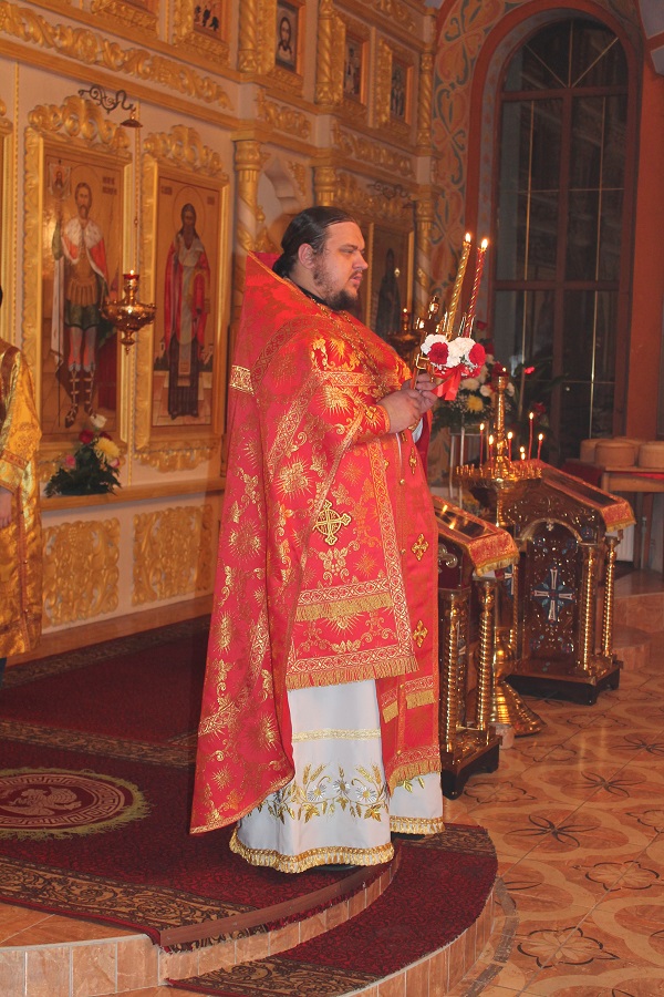 Его Высокопреосвященству сослужили иерей Александр Рябов – настоятель собора, диакон Евгений Васильев – клирик собора и диакон Алексий Денисов – клирик храма блж. Ксении Петербургской (ст. Фаянсовая).