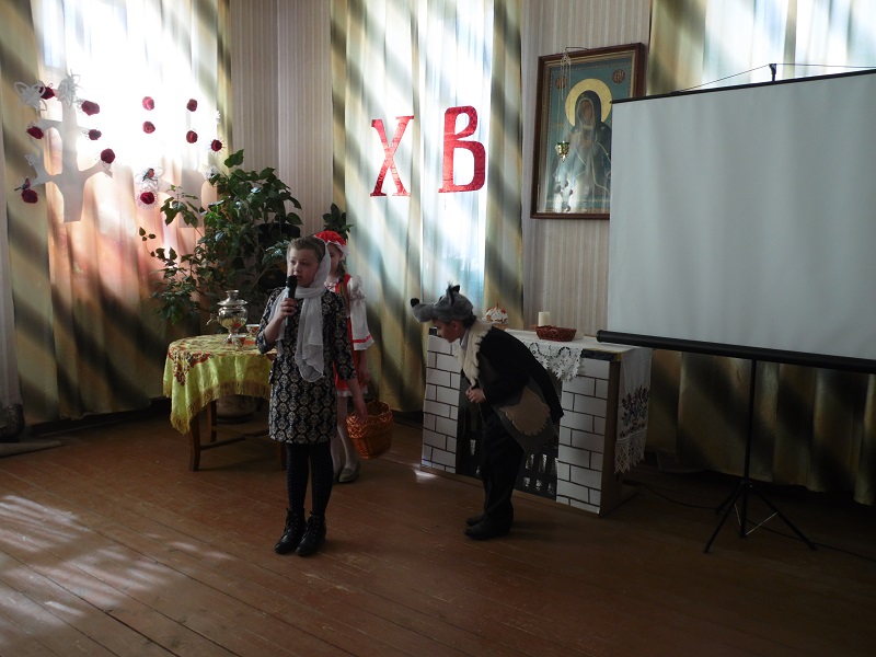 Затем последовало выступление воспитанников школы. Звучали Пасхальные стихотворения и песни, были показаны две инсценировки – известные сказки на новый лад – «Курочка Ряба» и «Красная шапочка». В завершении концерта всем воспитанникам были вручены праздничные подарки. Ребятам было предложено исполнить сложившуюся традицию – запустить воздушные шары в небо, предварительно сделав надписи со своими пожеланиями.