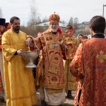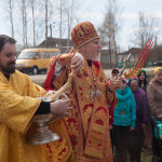 По окончании Литургии был совершен Пасхальный крестный ход. Далее владыка поздравил прихожан храма с воскресным днем и произнес проповедь.