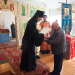 В завершении всего владыка преподнес Архиерейские грамоты активным прихожанам храма — Котовой Т. С. и Романову А. Н., и благотворителю храма — Демину Н. И.
