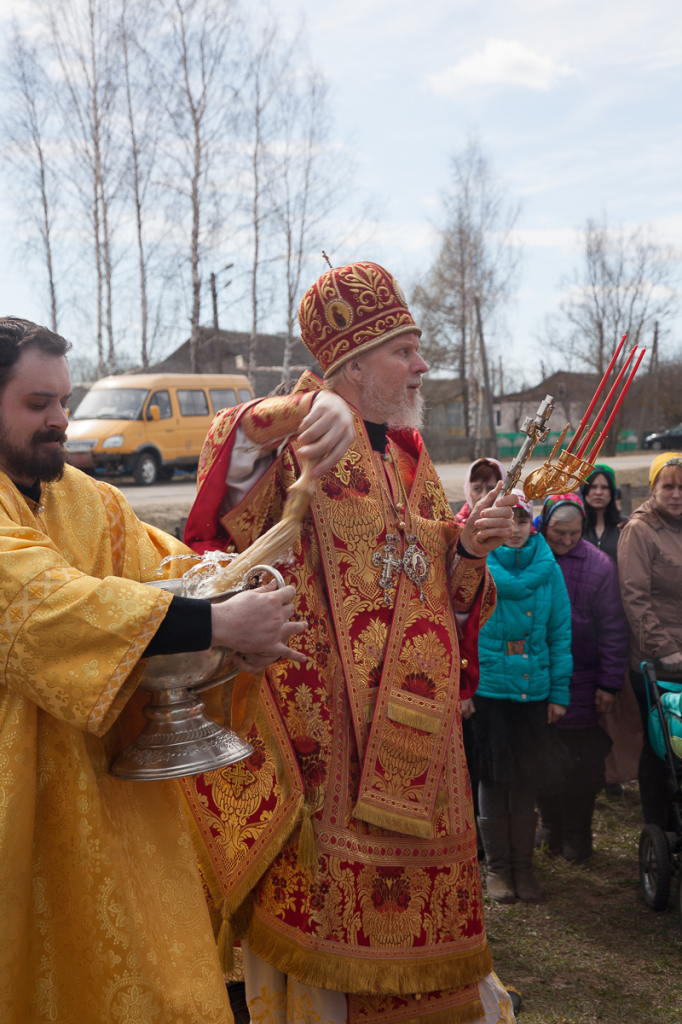 По окончании Литургии был совершен Пасхальный крестный ход. Далее владыка поздравил прихожан храма с воскресным днем и произнес проповедь.