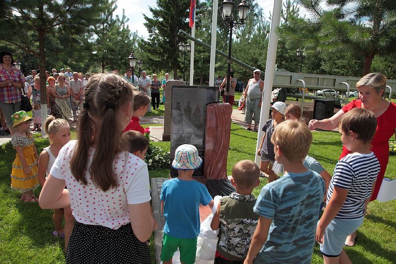 Сделать это пригласили официальные лица. Однако представительные взрослые единодушно сняли с себя такую ответственность и предоставили детям почетное право явить миру символ памяти потомков. Услышав, что им доверяют совершить нечто важное, ребятня сначала не поверила своим ушан. Но почувствовав всестороннюю поддержку, мальчишки и девчонки разного возраста выполнили порученное задание. Раз, два, три и …перед взором участников мероприятия предстала плита с памятной надписью.
