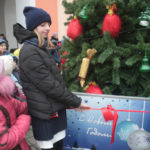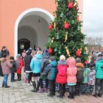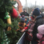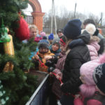 Далее состоялось самая торжественная часть праздника — открытие Рождественской елки. Освободить елку от завязанной вокруг ленты, были приглашены самые юные воспитанники.